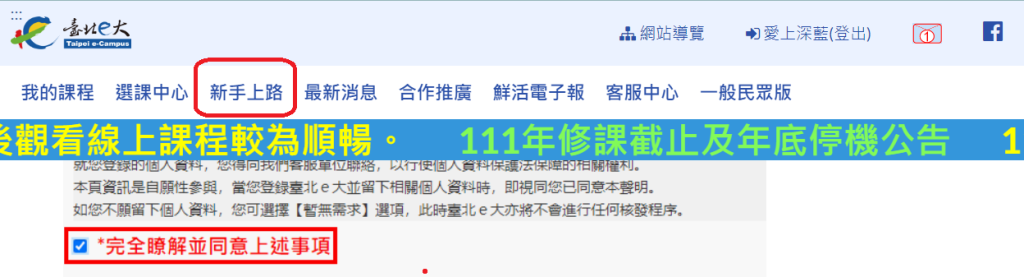 詳情可參閱【 新手上路/4.臺北e大線上課程選(退)課與閱讀課程步驟】