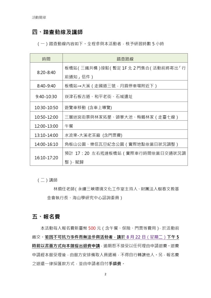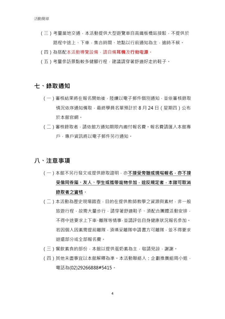 轉知國立臺灣圖書館辦理「臺灣歷史現場踏查」北區場次,敬請教師踴躍參加Post author:klgsh711Post published:2023-07-26Post category:圖書館 / 教師研習 / 校園公告 Post Views: 68Read more articles上一篇文章轉知國立臺灣師範大學受教育部委託辦理「112年度中學生MIT AppInventor培訓二日營」報名資料,第三梯次報名於112 . 年 8 月 7 日截止,請協助儘早轉知所屬國高中,請鼓勵同學參加。下一篇文章公告各校如辦理教育部「推動中小學數位學習精進方案」高級中等學校實施計畫之教師增能研習,需聘認證講師;課程內容亦需符合規定。其他規定,請看說明相關內容國立臺灣師範大學辦理「地方教育輔導系列講座-正向支持教師專業發展工作坊」,請新進教師報名參加。2022-12-22置頂公告111年1月18日召開110學年度第一學期第2次校務會議資料2022-01-04