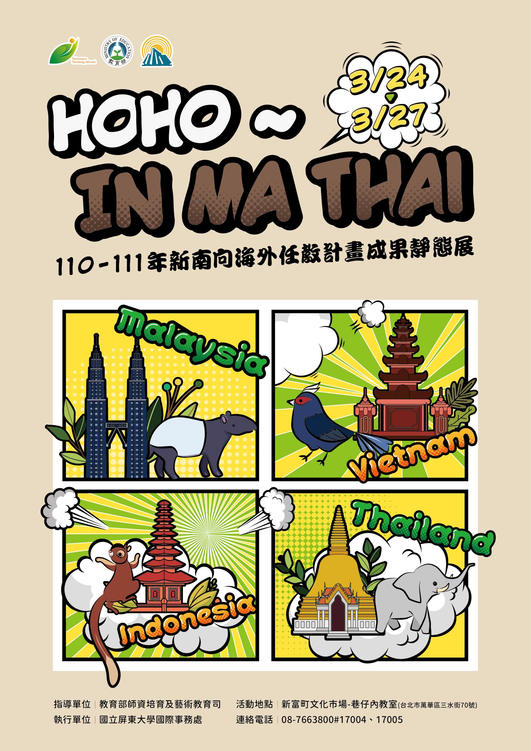 國立屏東大學國際事務處訂於112年3月24日(星期五)至3月27日(星期一)於新富町文化市場巷仔內教室辦理「110-111年教育部補助合格教師赴新南向友好國家學校任教計 畫靜態成果展」一案,活動資訊詳如附件。Post author:klgsh211Post published:2023-03-06Post category:教學組 / 教師研習 / 校外宣導與活動一、 活動相關資訊如下:(一) 活動日期與時間:112年3月24日至112年3月27日10:00-18:00。(二) 活動地點:臺北市萬華區三水街70號(巷仔內教室)。二、 活動相關資訊如附件,並公告於海外任教計畫官方網站。1599-2下載 Post Views: 57Read more articles上一篇文章國立蘭陽女子高級中學辦理「數位科技應用:GoogleWorkspace回流分享會」,因故延期至112年6月3日(星期六)辦理,敬邀教師參與。下一篇文章轉知大葉大學烘焙暨飲料調製學士學位學程辦理「2023全國學生盃創意茶飲調製競賽」相關內容2025年暑期特色營隊/國立臺灣海洋大學2025-05-20轉知嘉藥學校財團法人嘉南藥理大學人文暨資訊應用學院辦理「教育部推動第三期大學社會責任實踐計畫『112年西港意象創意海報設計競賽』」活動2023-07-19