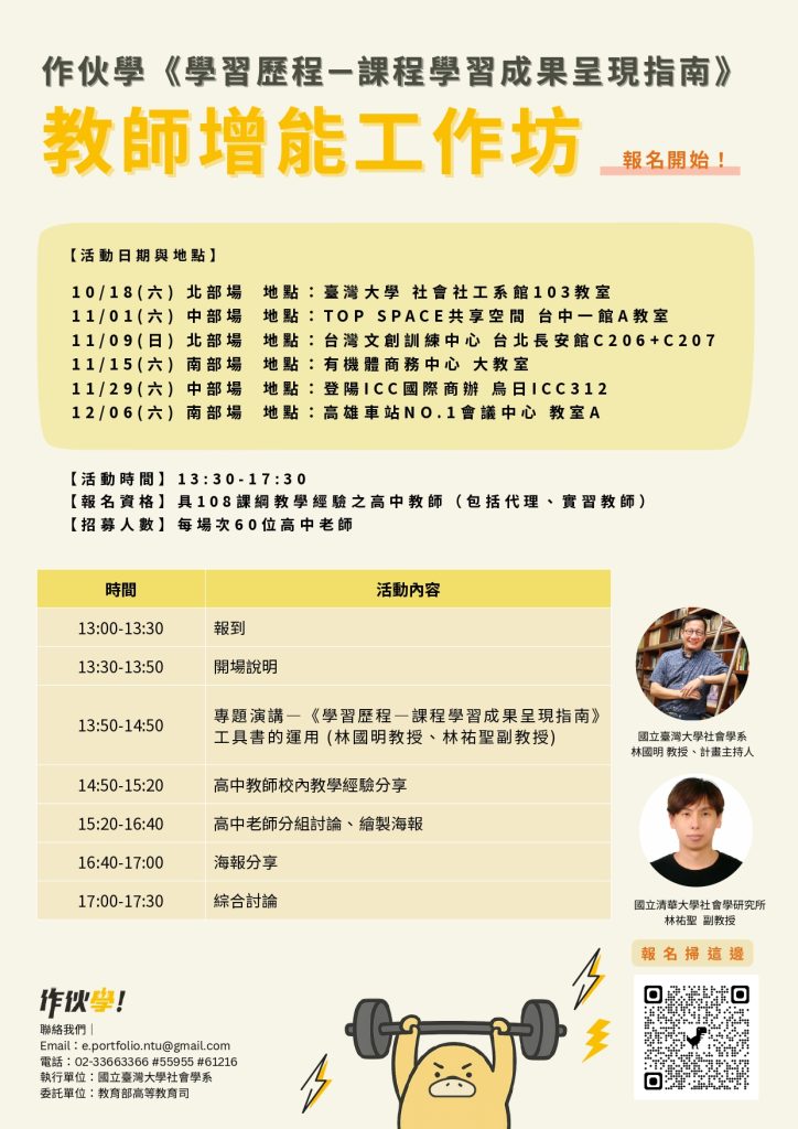 國立臺灣大學辦理114年度《學習歷程—課程學習成果呈現指南》高中教師增能工作坊數場,鼓勵教師參與。