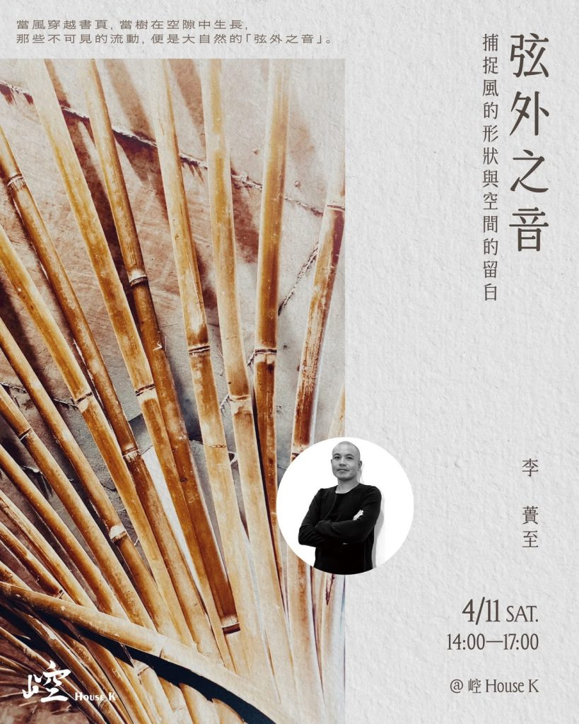 二、當日講座由李蕢至藝術家主講,歡迎對藝術創作、空間美學及文化議題有興趣之民眾於活動網址(https://forms.gle/7PKh6xte7zvijmDn8)報名,若尚有名額,開放現場候補入場。