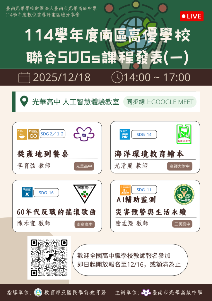 (一)主題:114-1南區高優學校聯合SDGs課程分享會