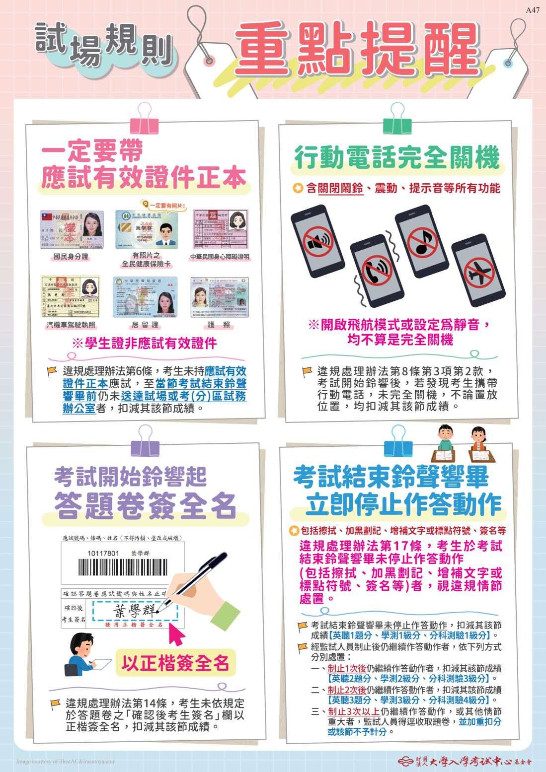 115學年度第一次高中英聽測驗10/18(六)基隆考區公告Post author:klgsh240Post published:2025-10-14Post category:大學入學 / 教務處 / 最新消息 / 校園公告 / 置頂公告 / 試務組1.115學年度高中英語聽力測驗第一次考試基隆考區公告(請點選查詢)2. 考生於考試當日務必攜帶「國民身分證」(或附有照片之健保卡或駕駛執照或護照或居留證或身心障礙證明正本為應試證件)。3. 英聽測驗分為上午、下午場次,請考生先查好自己的考試場次與試場位置。4.「應考資訊查詢請按我」、「試場分配請按我」5. 請留意手機要關機。預祝同學們考試順利!115學年第一次英聽-基隆女中試場配置圖下載115英聽_考試日程表下載115英聽_試場規則重點提醒下載 Post Views: 28Read more articles上一篇文章外交日OPEN HOUSE DAY/淡江大學下一篇文章「大手牽小手-我國高中生與大專校院外籍生交流計畫」相關內容轉知體育學科中心辦理「運動競賽術語與UBD概念應用:棒壘與籃球雙語情境實作研習」2024-02-23置頂公告第2次段考成績開放輸入時間為11月22日(二)至11月29日(二)2022-11-16