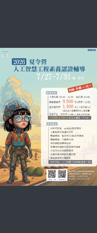 二、因應全國會考期程,該課程已調整為115年5月23日至6月27日每週六上課(6月20日端午連假停課),歡迎想知道AI到底怎麼運作(如ChatGPT、AI繪圖及影音生成)有興趣之學生報名參加,協助學生提前培養AI應用能力與未來升學競爭力。
