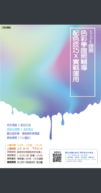 三、本校同步推出多項暑期熱門課程與證照輔導,包括「Python程式系列」、「人工智慧工程素養認證輔導」、「ACP國際證照-Photoshop與Illustrator考照班」、「SSE色彩學證照輔導」及「CCS生成式AI基礎能力認證班」等,內容結合理論與實作,適合國高中生探索興趣並強化專業能力。
