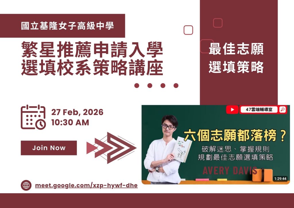 邀請升學輔導專家黃仕親老師親自教授。歡迎本校師生及家長一起參加本講座
