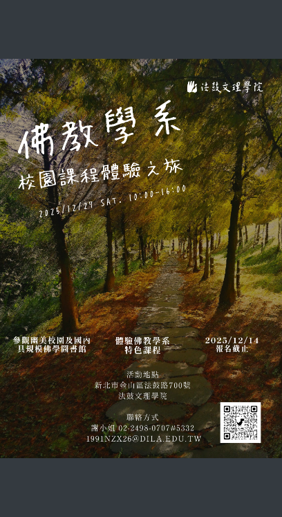 114年12月27日(星期六)舉辦「114學年度法鼓文理學院佛教學系校園課程體驗之旅」活動