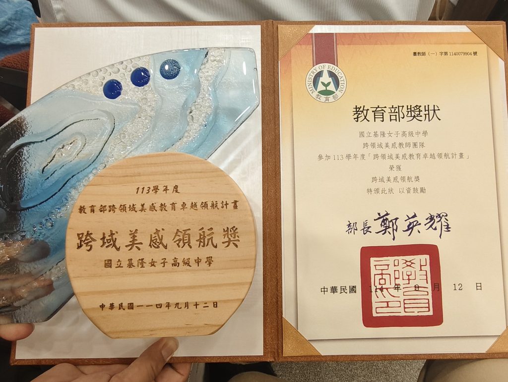 9/12日 藝蘊心田·融美啟航—跨領域美感教育計畫114學年度合作學校頒獎典禮暨共識工作坊 熱鬧登場!!恭喜本校榮獲114年跨域美感教育計畫合作學校、榮獲113學年度跨域美感領航獎的肯定!感謝計畫端評審和計畫主持人趙惠玲老師的肯定以及本校跨域美感教師社群教師團隊夥伴的合作和支持,才能成就這一切美好!感謝計畫端對基隆女中跨域美感課程的支持,讓我們執行基隆在地美感課程「山篇」、「河篇」課程的落實,更讓我們114學年度有機會繼續完成第三部曲「海篇」的跨域美感課程!新的一年即將開始,讓我們精彩繼續看下去!