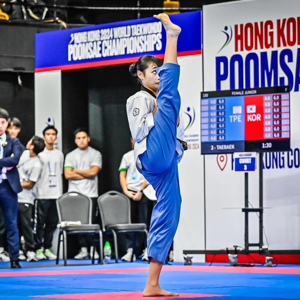 恭喜本校 215 班林侑萱 同學在 「2024年香港跆拳道品勢世錦賽」,以堅強的實力與穩定的表現,成功以 0.02分的極小差距險勝南韓選手,勇奪金牌!