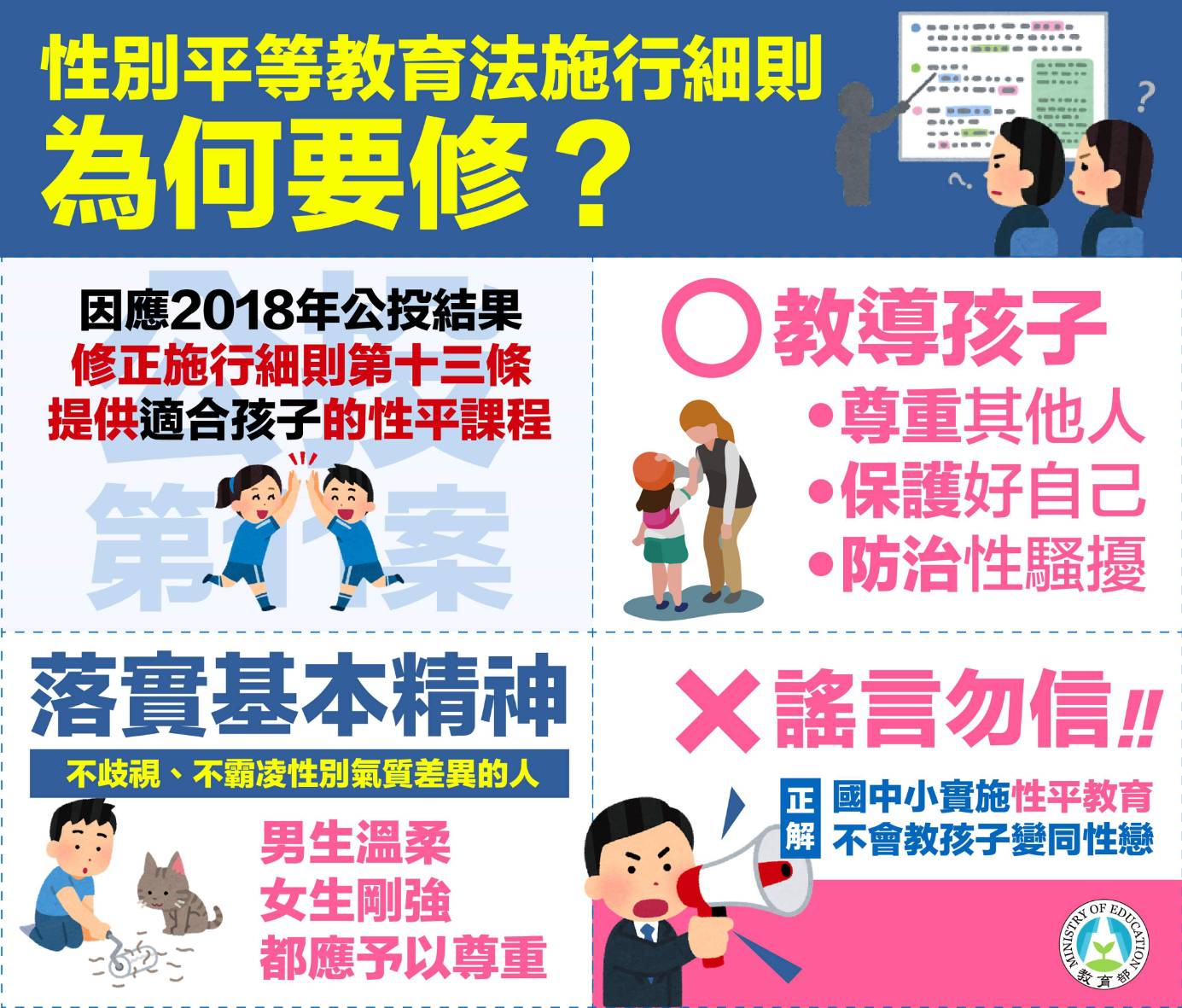 114年11月21日(星期五)為班會活動時間,各班實施性別平等教育法令宣導,學務處生輔組已提供相關宣導影片及宣教海報,公布本校官網,請各班利用班會活動時間及其他重要集會,對班上同學實施相關法令宣教。Post author:klgsh360Post published:2025-11-17Post category:最新消息 / 校園公告一、宣教影片:條文解說】跟蹤騷擾防制法第4條:書面告誡是什麼?5分鐘簡單學習XD下載【榮賣黑白來】我說的話是性騷擾-甚麼是身體界線-_-性別平等教育法篇下載公共場所遇到性騷擾(臺南市政府家庭暴力暨性侵害防治中心)下載性騷擾的界線!游泳性別平等微電影下載感到不舒服,就算性騷擾!勇敢拒絕適時求助下載二、Youtube影片連結:1.https://www.youtube.com/watch?v=vpQnCv_3r482.https://www.youtube.com/watch?v=Q7IEO63Bwok&t=45s3.https://www.youtube.com/watch?v=paw-Ermt1DE4.https://www.youtube.com/watch?v=97sSvR6wiM0三、宣教資料:性平宣導ppt下載37c7b9b49e356889f9f9e51a2dab6be4下載尊重多元性別海報下載性別平等海報性別平權下載17367465927017anXlAjQ下載 Post Views: 21Read more articles上一篇文章東海大學智慧計算暨應用數學系「東海大學女數學家獎助學金」下一篇文章【教師調查活動】Google for Education × 親子天下「AI時代教師數位教學應用現況大調查」開跑!誠摯邀請貴校教師共同參與。相關內容轉知明逸數位有限公司認證測驗中心辦理「五週年回饋專案,學生報名認證測驗享39折優惠,成績A級以上獎勵100元電子禮卷」活動2022-03-14公告客家委員會編纂國、高中教育階段客語數位教材已置於「來上客」網站2022-09-20