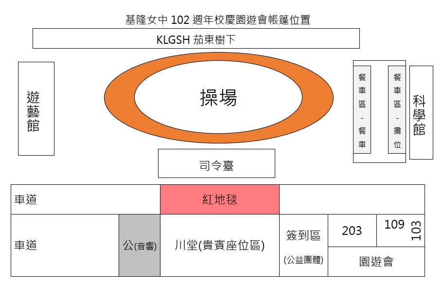 三、帳篷預計於115年4月10日上午搭設(中間車道小車可通過),帳篷搭設及園遊會擺設位置圖如下:
