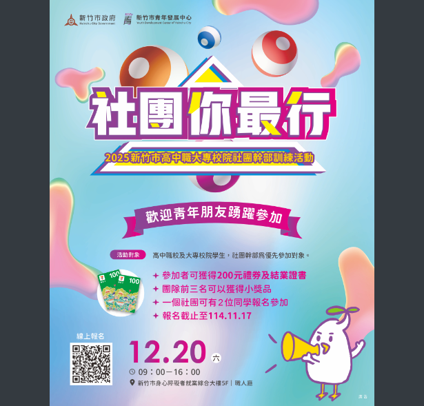 (一)活動名稱:「社團你最行」2025新竹市高中職大專校院社團幹部訓練。
