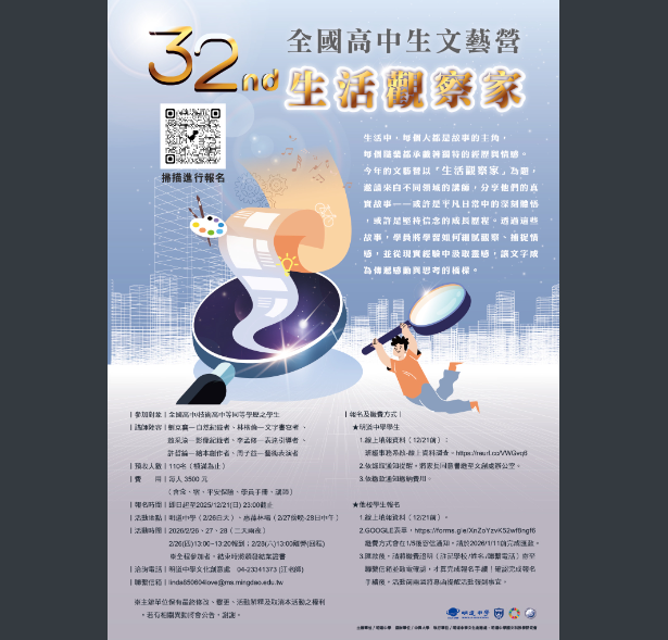 七、報名及繳費方式:線上報名(2025/12/21前),詳細資料請見以下網址:https://reurl.cc/QVW3bo,確認完成報名手續後,活動前兩週將專函提醒報到事宜。