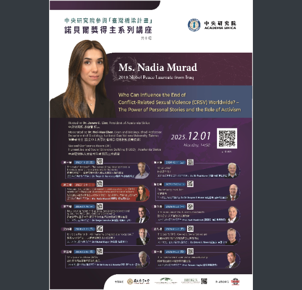 一、「臺灣橋梁計畫」自本(114)年11月起至115年4月,共將邀請 31 位諾貝爾獎得主訪問本院及全臺十餘所大學,相關資訊請參閱網站:https://www.peace-bridges.net/。
