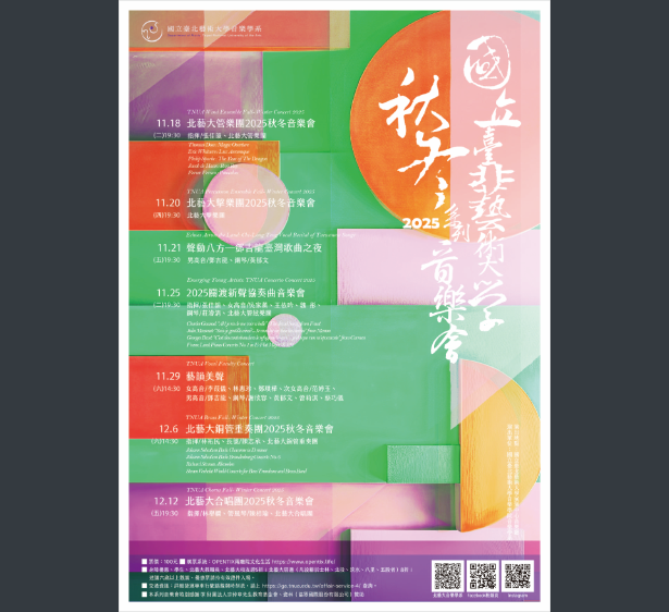 轉知國立臺北藝術大學音樂學系辦理之「北藝大2025秋冬系列音樂會」