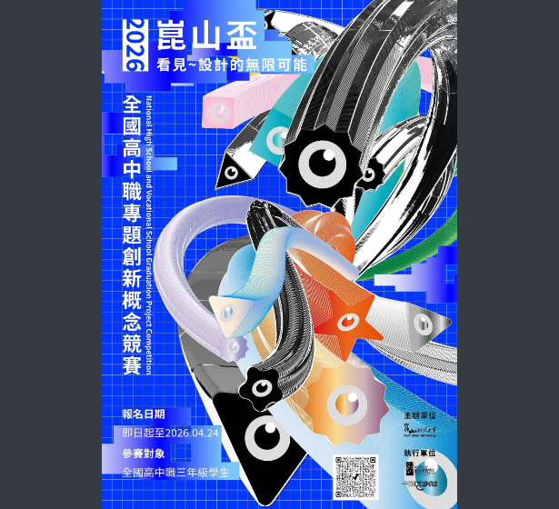 一、本校視覺傳達設計系辦理「2026年崑山盃全國高中職專題創新概念競賽」,主要目的為深化學生專題製作與創新創意思維,培養學生專題製作發表能力,透過專題競賽活動讓學生所學的專業知能與設計思考,實踐於專題研究與企劃提報中,以「專題策劃」為核心,培養跨域創新、問題解決與簡報能力,培養具創意、人文、跨域整合的新世代設計人才。