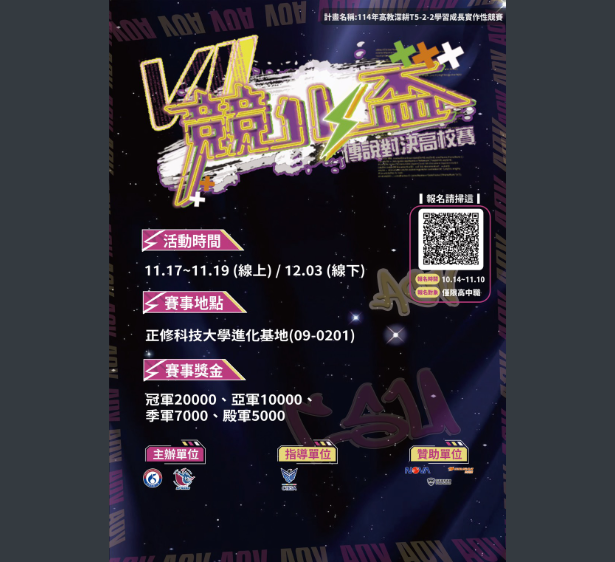 一、旨揭電競賽將於114年11月17日至12月3日舉行,報名隊伍上限為32隊,需同校組隊(每校可多隊報名),敬請貴校師長協助組隊。