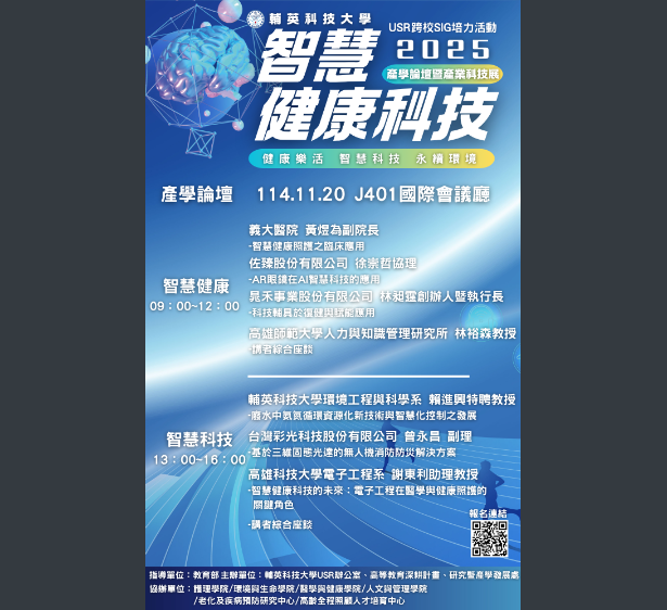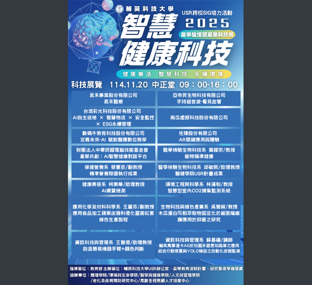 轉知輔英科技大學辦理USR x SIG培力活動「2025智慧健康科技產學論壇暨產業科技展」