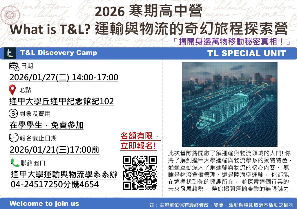 一、旨揭營隊涵蓋多個課程,包含物流倉儲管理、陸海空運輸等,旨在讓學員透過有趣的互動,了解學系的特色並探索行業的未來發展趨勢。