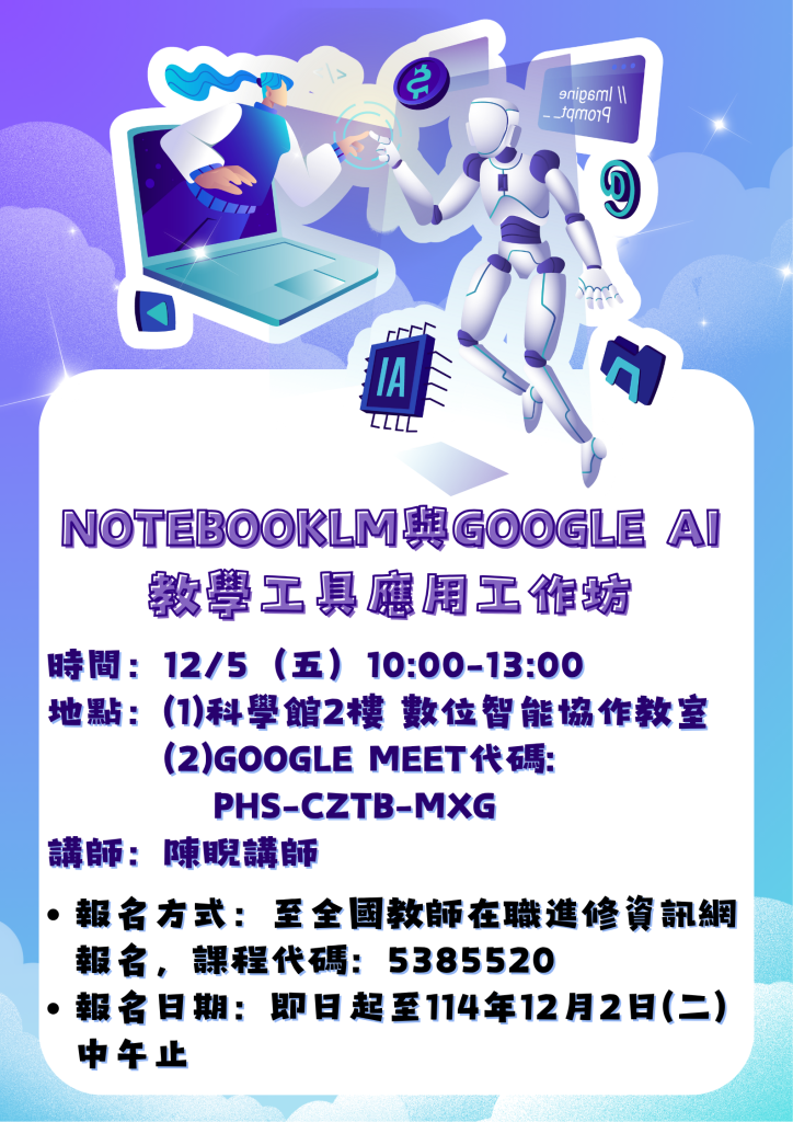 NotebookLM 與 Google AI 教學工具應用工作坊宣傳海報